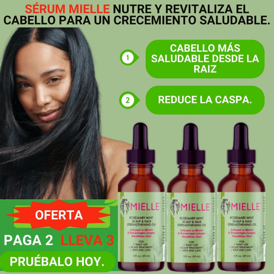 MIELLE: POTENCIA EL CRECIMIENTO DEL CABELLO, CON ROMERO, MENTA Y BIOTINA.